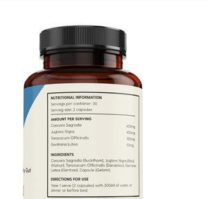 Cascara Sagrada, Black Walnut, Dandelion, Gentiana Lutea.